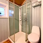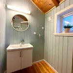 Oltre a un divano, The Blacksmith'S Place - Cozy Rorbu In Lofoten Villa comprende un camino in pietra e finestre insonorizzate. Quest'alloggio dispone di 1 bagno con un bagno alla francese e una doccia. Ci sono anche asciugacapelli e asciugamani.